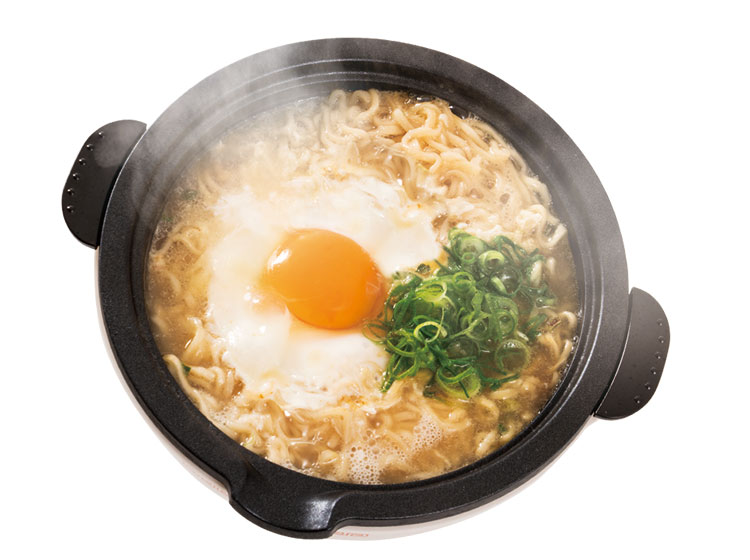 水を入れてスイッチを押し、沸騰したら即席麺を入れるだけでラーメンが作れます。