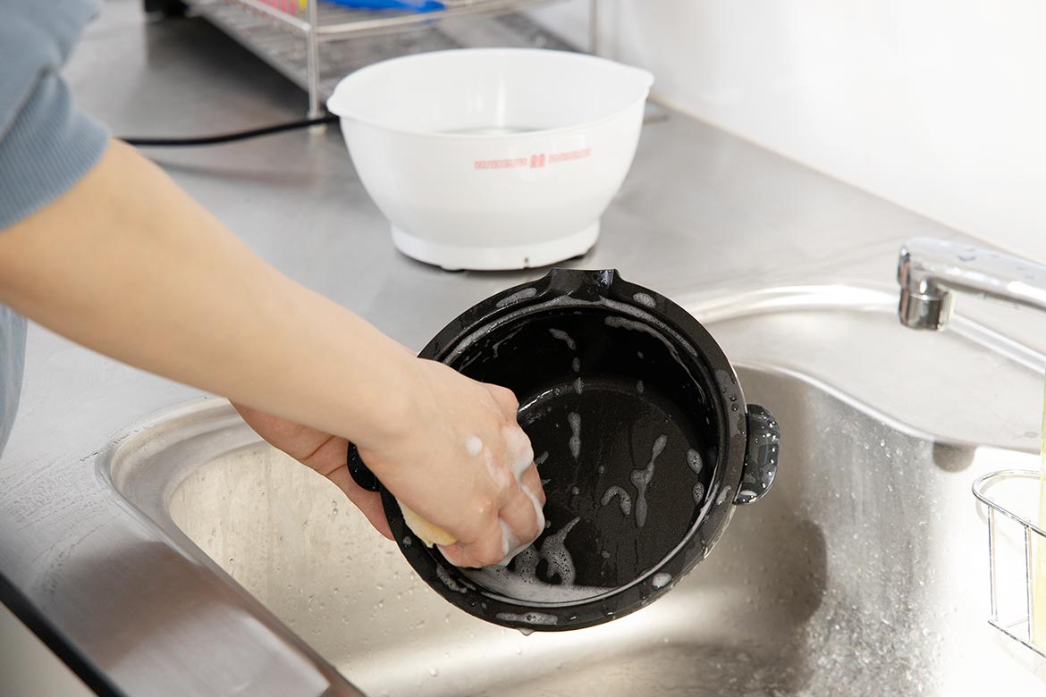 内鍋はフッ素樹脂加工で、焦げ付きにくくお手入れ簡単。